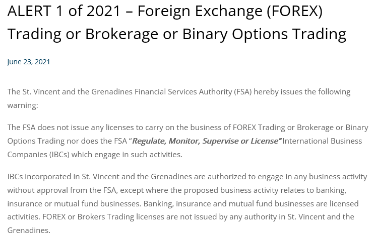 However, this registration does not mean much. The FSA does not license forex brokers and does not regulate their activities. The institution has repeatedly issued warnings on this issue, with the latest such warning dated 23 June 2021: